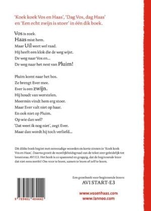 Dit dikke boek begint met eenvoudige woorden en korte zinnen in ‘Koek koek Vos en Haas’. Daarna groeit de moeilijkheidsgraad van de tekst zeer geleidelijk tot leesniveau AVI E3. Het boek is zo spannend en grappig, dat de beginnende lezer dat niet eens merkt! Om voor te lezen, samen te lezen of zelf te lezen.