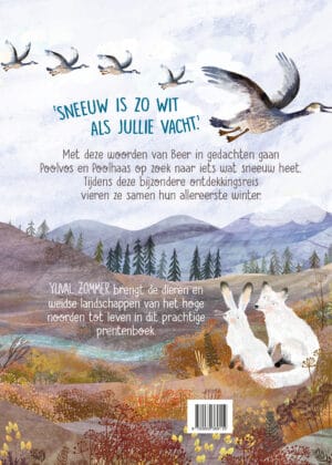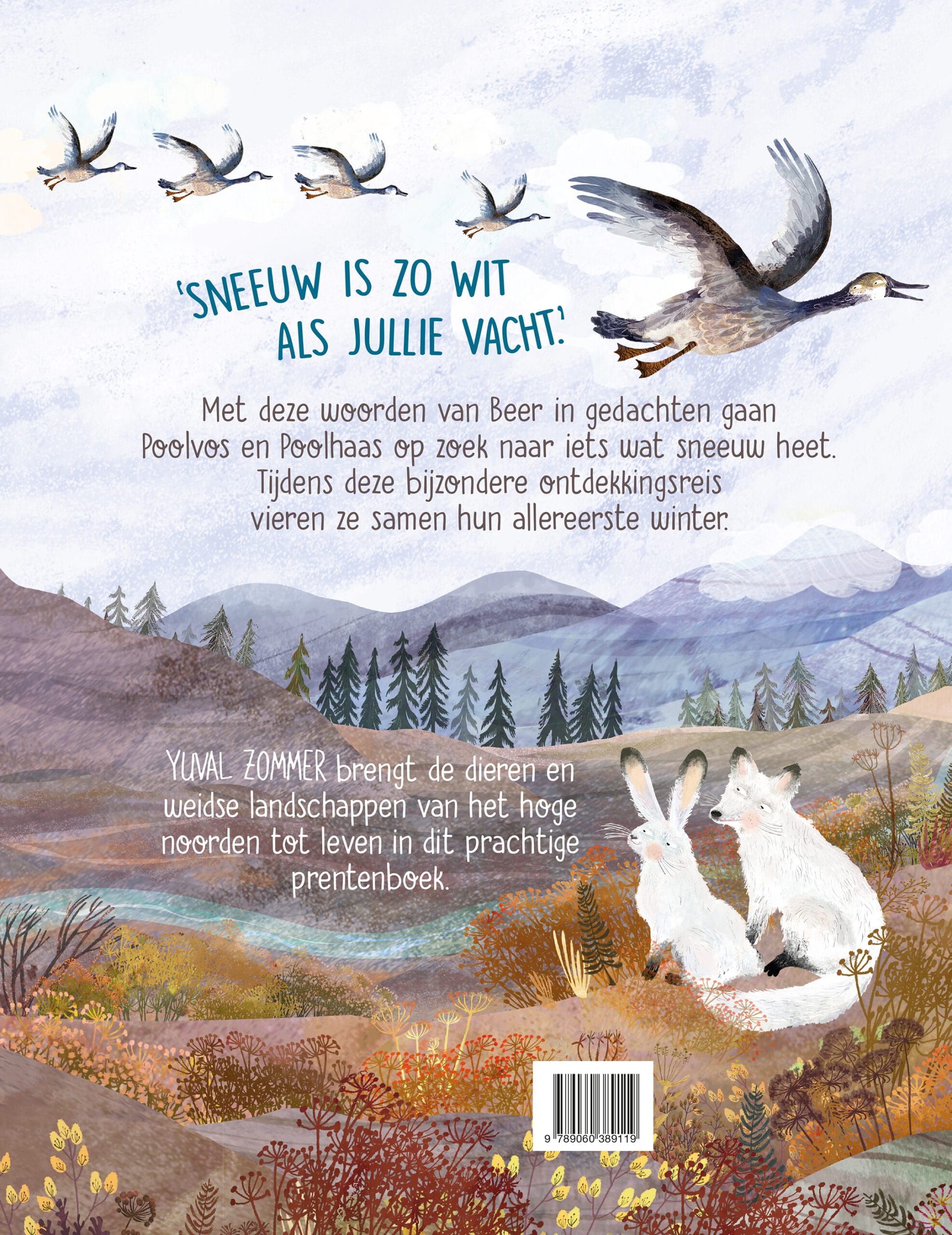 Poolvos en Poolhaas hebben nog nooit sneeuw gezien. Ze zijn in de lente geboren, werden vrienden in de zomer en nu het herfst is zijn ze geweldig nieuwsgierig geworden: wat is sneeuw?