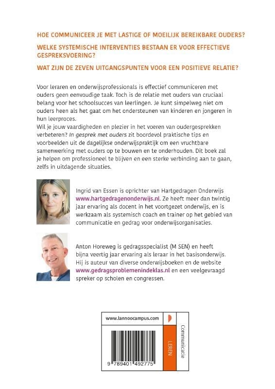 Wil je jouw vaardigheden en plezier in het voeren van oudergesprekken verbeteren? In gesprek met ouders zit boordevol praktische tips en voorbeelden uit de dagelijkse onderwijspraktijk om een vruchtbare samenwerking met ouders op te bouwen en te onderhouden. Dit boek zal je helpen om professioneel te blijven en een sterke verbinding aan te gaan, zelfs in uitdagende situaties.