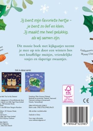 Dit mooie boek met kijkgaatjes neemt je mee op reis door een winters bos met knuffelige muisjes, vriendelijke vosjes en slaperige zwaantjes.
