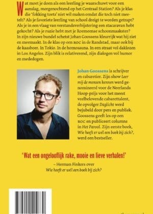 Wat moet je doen als een leerling je waarschuwt voor een aanslag, morgenochtend op het Centraal Station? Als je klas die ‘fokking toets’ niet wil maken omdat die toch niet meetelt? Als je favoriete leerling van school dreigt te worden getrapt? Als je in een vlaag van verstandsverbijstering een stacaravan hebt gekocht? Als je ruzie hebt met je Roemeense schoonmaakster? In zijn nieuwe bundel schetst Johan Goossens kleurrijk wat hij ziet en meemaakt. In de klas op een roc in de Randstad, maar ook bij de kaasboer. In Tokio. In de homosauna. In een straat vol daklozen