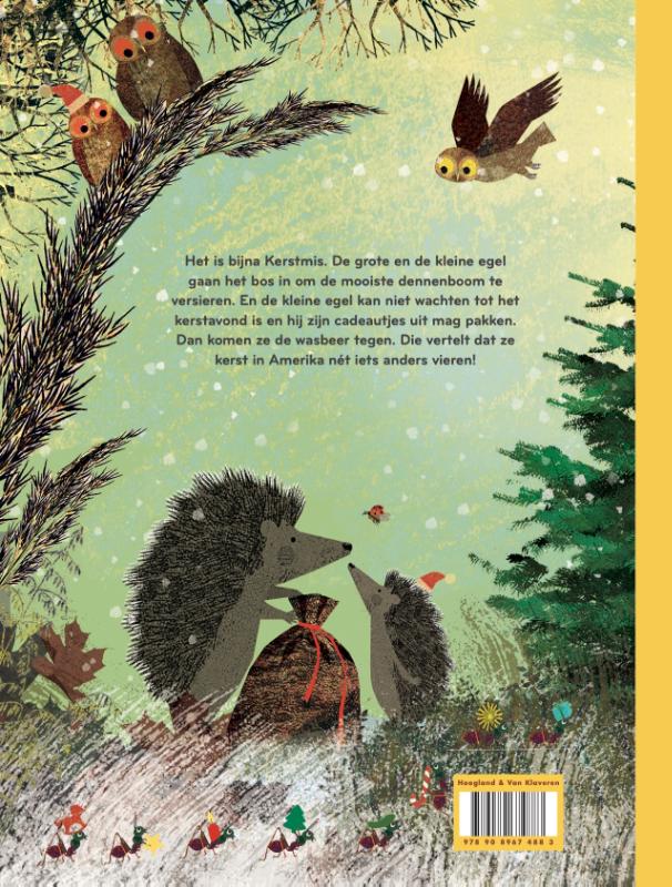 Het is bijna Kerstmis. De grote en de kleine egel gaan het bos in om de mooiste dennenboom te versieren. En de kleine egel kan niet wachten tot het kerstavond is en hij zijn cadeautjes uit mag pakken. Dan komen ze de wasbeer tegen. Die vertelt dat ze kerst in Amerika nét iets anders vieren!