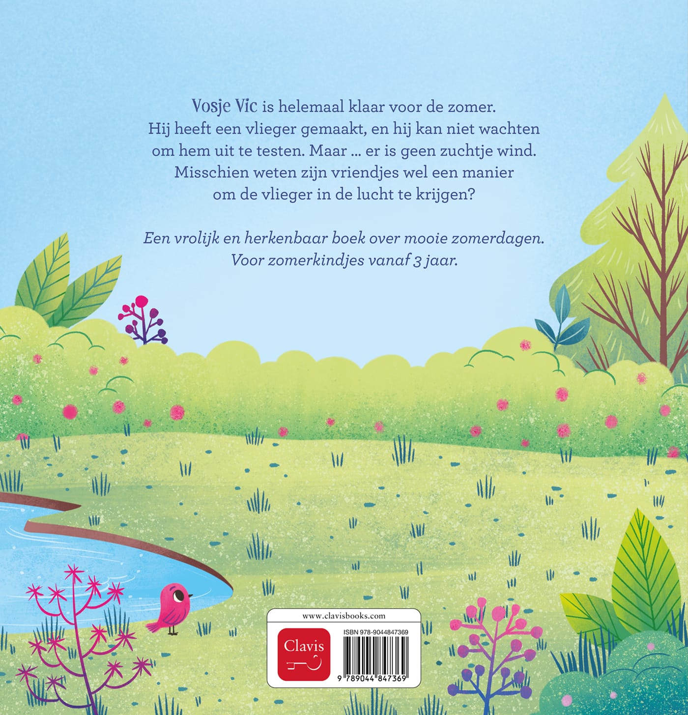 Vosje Vic is helemaal klaar voor de zomer. Hij heeft een vlieger gemaakt, en hij kan niet wachten om hem uit te testen. Maar … er is geen zuchtje wind. Misschien weten zijn vriendjes wel een manier om de vlieger in de lucht te krijgen?