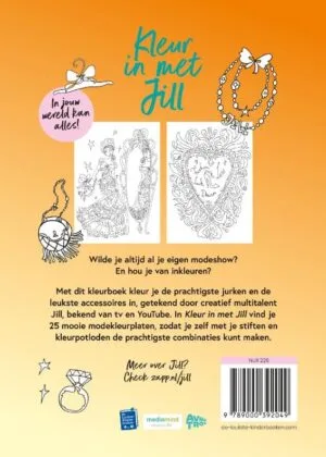 Hou je van kleuren? Dan is het nieuwe kleurboek van Jill (bekend van tv en YouTube) echt iets voor jou. In Kleur in met Jill vind je 25 te gekke fashion-kleurplaten. Of het nou een zwierige droomjurk, een mooie hak met toffe strik of een geweldige handtas is – jij geeft alle outfits een topdesign.