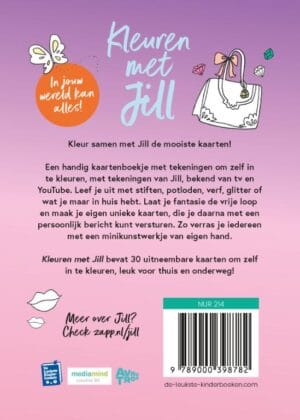 Een handig kaartenboekje met tekeningen om zelf in te kleuren, met tekeningen van Jill, bekend van tv en YouTube. Leef je uit met stiften, potloden, verf, glitter of wat je maar