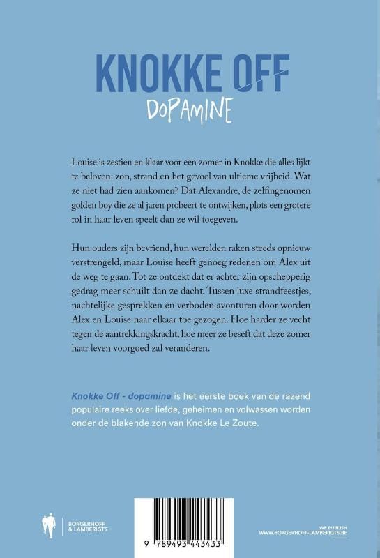 Knokke Off, dopamine is het eerste boek van de razend populaire reeks over liefde, geheimen en volwassen worden onder de blakende zon van Knokke Le Zoute.