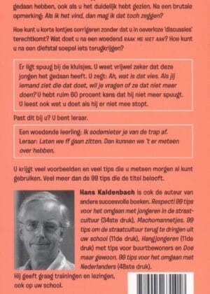 Hans Kaldenbach is ook de auteur van andere succesvolle boeken. Respect. 99 tips voor het omgaan met jongeren in de straatcultuur (34ste druk), Machomannetjes. 99 tips om de straatcultuur terug te dringen uit uw school (10de druk), Hangjongeren (11de druk), met tips voor buurtbewoners, en Doe maar gewoon, 99 tips voor het omgaan met Nederlanders (47ste druk).