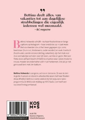 Met een flinke dosis zelfspot beschrijft Bettina situaties waar iedere moderne vrouw, moeder en ondernemer zich in zal herkennen. Ook als je niet getrouwd bent met Jim Bakkum.
