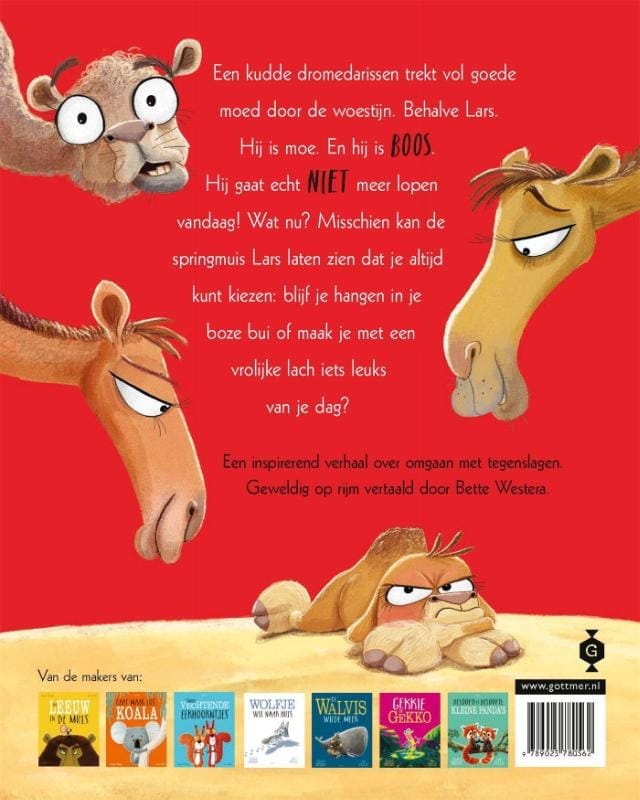 ‘Lars de dwarse dromedaris’ is een vrolijk rijmverhaal en helpt kinderen op een positieve, luchtige manier om uit een negatieve bui te stappen. Bette Westera maakt ook dit keer weer een steengoede vertaling op rijm. Geschikt voor kinderen vanaf 3 jaar.