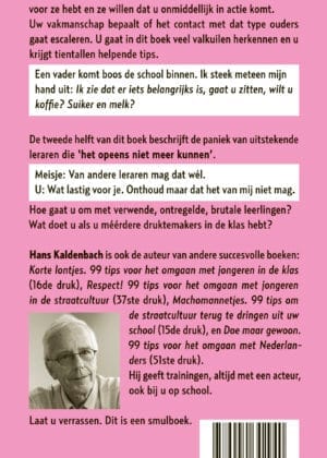 Hans Kaldenbach is ook de auteur van andere succesvolle boeken: Korte lontjes. 99 tips voor het omgaan met jongeren in de klas (16de druk), Respect! 99 tips voor het omgaan met jongeren in de straatcultuur (37ste druk), Machomannetjes. 99 tips om de straatcultuur terug te dringen uit uw school (15de druk), en Doe maar gewoon. 99 tips voor het omgaan met Nederlanders (51ste druk).