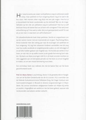 Een taboedoorbrekend boek dat lezers helpt op een serene manier met een levenseinde om te gaan Het maatschappelijk debat rond palliatieve zorg en euthanasie woedt volop, maar patiënten en hun omgeving blijven nog al te vaak in de kou staan. Velen van hen raken verstrikt in de medische en juridische mallemolen en zijn op zoek naar duidelijke informatie. Manu Keirse beantwoordt in dit boek dertig concrete vragen. Hoe kun je je bijvoorbeeld voorbereiden op het afscheid? Wat zijn de mogelijkheden op het vlak van palliatieve zorg en euthanasie? Hoe kun je zelf beslissen hoe je de laatste fase van je leven wilt vormgeven? En wat als een zieke niet meer in staat is zelf beslissingen te nemen?