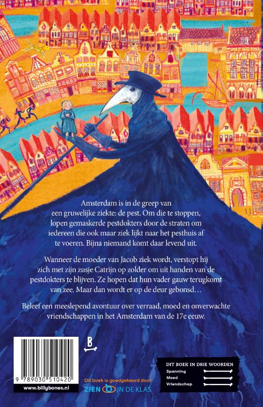 Wanneer de moeder van Jacob ziek wordt, verstopt hij zich met zijn zusje Catrijn op zolder om uit handen van de pestdokters te blijven. Ze hopen dat hun vader gauw terugkomt van zee. Maar dan wordt er op de deur gebonsd…