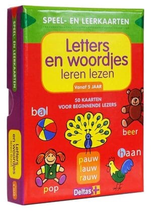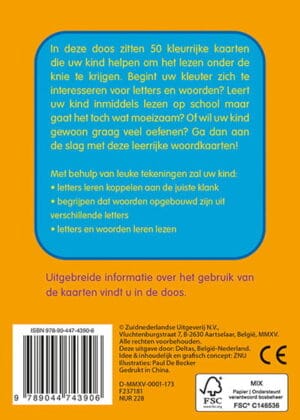 In deze doos zitten 50 kleurrijke kaarten die uw kind helpen om het lezen onder de knie te krijgen. Begint uw kleuter zich te interesseren voor letters en woorden en is hij of zij klaar om de eerste stapjes naar lezen te zetten? Leert uw kind inmiddels lezen op school maar gaat het toch wat moeizaam? Of is uw kind gewoon gemotiveerd en wil het graag veel oefenen? Ga dan aan de slag met deze leerrijke woordkaarten!