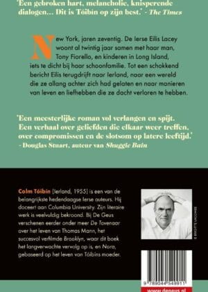 ‘Een gebroken hart, melancholie, knisperende dialogen… Dit is Tóibín op zijn best.’ – The Times
