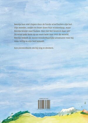 Beertje kan niet slapen door de harde wind buiten zijn hol. Zijn moeder, zusjes en broer doen hun winterslaap, maar Beertje kruipt naar buiten. Hoe ziet het leven er daar uit? De wind pakt hem op en voert hem mee over de wereld. Beertje beleeft de meest wonderbaarlijke avonturen voor hij weer veilig in zijn bed belandt.
