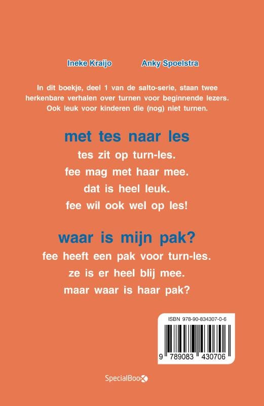 In dit boekje, deel 1 van de salto-serie, staan twee herkenbare verhalen over turnen voor beginnende lezers. Ook leuk voor kinderen die (nog) niet turnen.