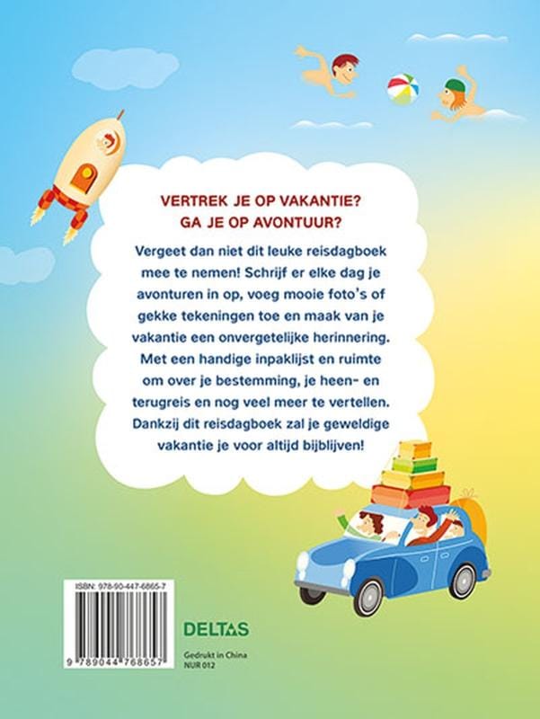 VERTREK JE OP VAKANTIE? GA JE OP AVONTUUR? Vergeet dan niet dit leuke reisdagboek mee te nemen! Schrijf er elke dag je avonturen in op, voeg mooie foto’s of gekke tekeningen toe en maak van je vakantie een onvergetelijke herinnering. Met een handige inpaklijst en ruimte om over je bestemming, je heen- en terugreis en nog veel meer te vertellen. Dankzij dit reisdagboek zal je geweldige vakantie je voor altijd bijblijven! Kwalitatieve hardcover uitgave met leeslint.