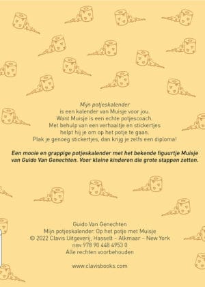 Mijn potjeskalender is een kalender van Muisje voor jou. Want Muisje is een echte potjescoach. Met behulp van een verhaaltje en stickertjes helpt hij je om op het potje te gaan. Plak je genoeg stickertjes, dan krijg je zelfs een diploma!