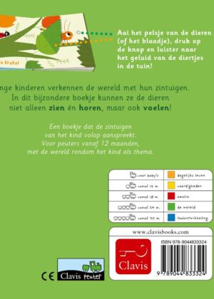 Een boekje dat de zintuigen van het kind volop aanspreken. Voor peuters vanaf 12 maanden, met de wereld rondom het kind als thema.