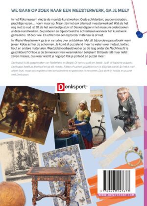 In Missie Meesterwerk ga je er van alles over ontdekken. Met dit bijzondere puzzelboek neem je een kijkje achter de schermen. Je komt al puzzelend meer te weten over metaal, textiel, hout en andere materialen. Weet jij bijvoorbeeld wat er op de laag onder De Nachtwacht is geschilderd? Of hoe je de binnenkant van keramiek kan bekijken? Dit boek telt maar liefst zeven missies, dus waar wacht je nog op? Pak je potlood en puzzel mee!