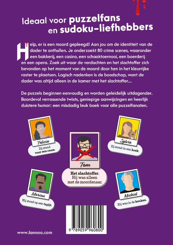 Help, er is een moord gepleegd! Aan jou om de identiteit van de dader te onthullen. Je onderzoekt 80 crime scenes, waaronder een bakkerij, een casino, een schaaktoernooi, een boerderij en een opera. Zoek uit waar de verdachten en het slachtoffer zich bevonden op het moment van de moord door hen in het kleurrijke raster te plaatsen. Logisch nadenken is de boodschap, want de dader was altijd alleen in de kamer met het slachtoffer…
