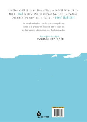 In het prentenboekdebuut ‘Natte stad’ werkt de Spaanse Mariajo slim met kleur en humor om een bemoedigend verhaal te vertellen over het oplossen van problemen voordat ze te groot worden. In ‘Natte stad’ staat de grote stad vol dieren ineens onder water… Op een dag komt iedereen in de stad erachter dat alles een beetje… NAT is. Eerst vindt niemand het erg. Het is juist wel leuk om weer eens met kaplaarzen aan in de plassen te springen, vinden de leeuw en de olifant. En het is maar water. Al moeten de muizen en egeltjes rondpeddelen in zelfgemaakte bootjes, want hun beentjes zijn te kort voor het dunne laagje water. Iedereen gaat ervan uit dat het vanzelf wel weer weggaat. Maar al snel wordt alles natter en natter, en is die laag water ineens een ENORM PROBLEEM. Niemand weet precies wat er moet gebeuren, maar dan ziet een slim klein aapje de oplossing. Daarvoor moeten alleen wel alle dieren samenwerken…