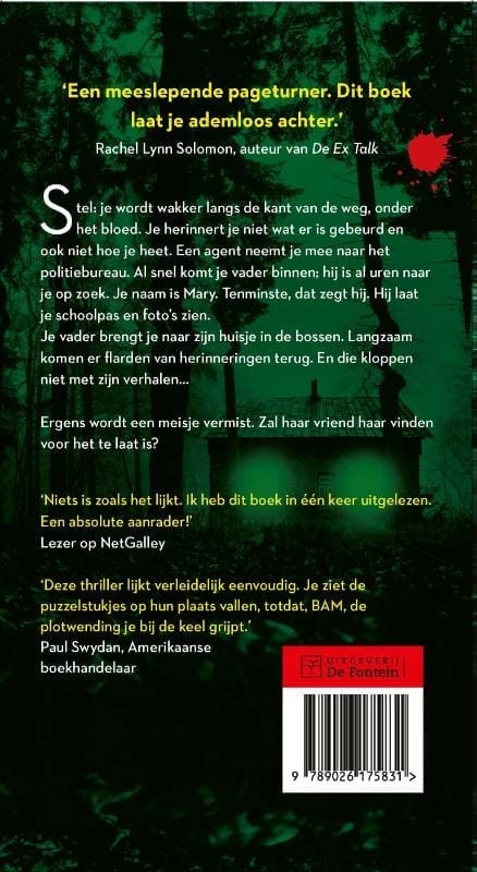 Stel: je wordt wakker langs de kant van de weg, onder het bloed. Je hebt geen idee wat er gebeurd is en wie je bent. Een agent neemt je mee naar het politiebureau. Al snel komt je vader binnen; hij is al uren naar je op zoek. Je naam is Margot Boone. Tenminste, dat zegt hij. Hij laat je geboorteakte en familiefoto's zien.