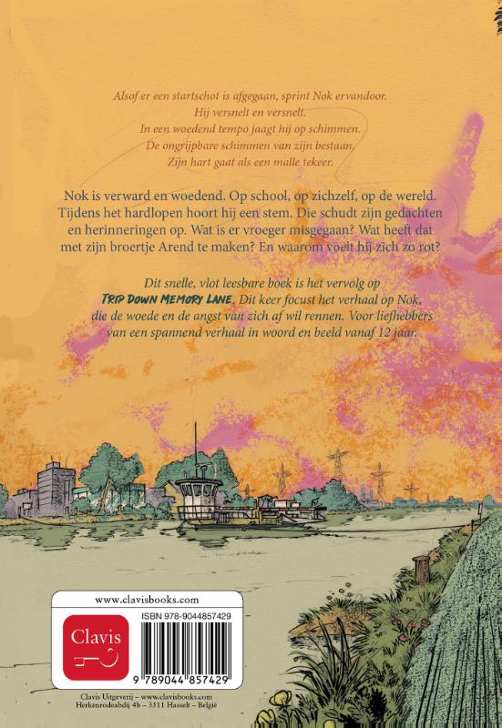 Dit snelle, vlot leesbare boek is het vervolg op Trip Down Memory Lane. Dit keer focust het verhaal op Nok, die de woede en de angst van zich af wil rennen. Voor liefhebbers van een spannend verhaal in woord en beeld vanaf 12 jaar.