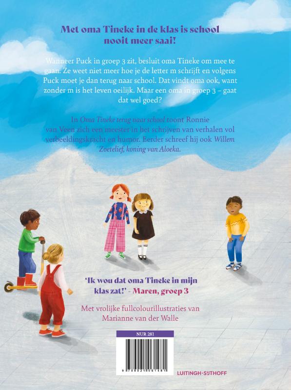 Ronnie van Veen, auteur van Willem Zoetelief, koning van Aloeka, schreef een kinderboek over een heerlijk gekke oma die terug naar school gaat. Met de korte verhalen in dit boek, met fullcolourillustraties van Marianne van der Walle, is voorleessucces gegarandeerd. Uiteraard mag dit boek in geen enkele onderbouwklas ontbreken!