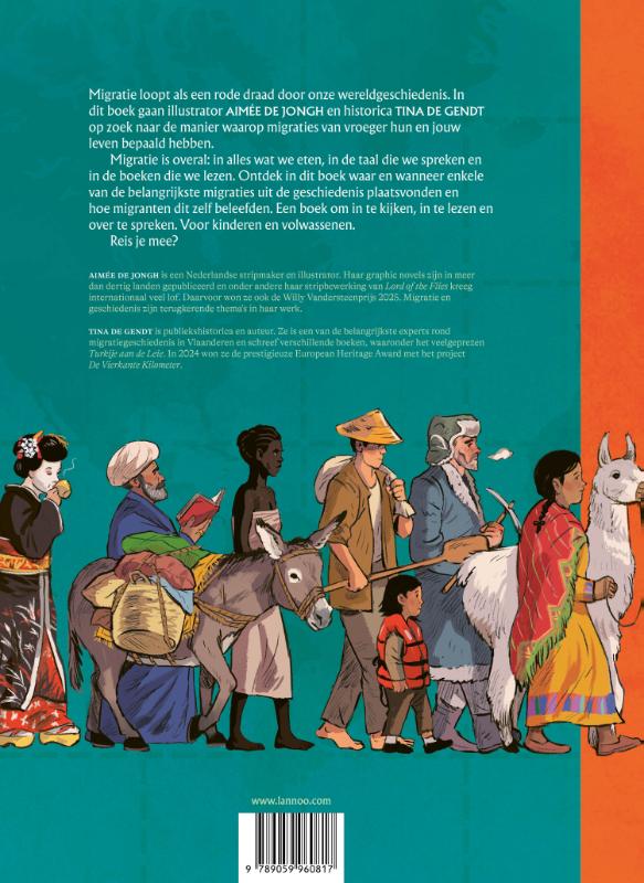Migratie loopt als een rode draad door onze wereldgeschiedenis. In dit boek gaan illustrator Aimée de Jongh en historica Tina De Gendt op zoek naar de manier waarop migraties van vroeger hun en jouw leven bepaald hebben.