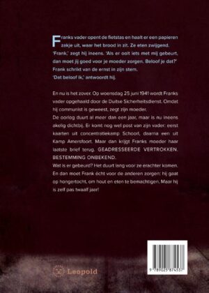 De oorlog duurt al meer dan een jaar, maar is nu ineens akelig dichtbij. Er komt nog wel post van zijn vader: eerst kaarten uit concentratiekamp Schoorl, daarna een uit Kamp Amersfoort. Maar dan krijgt Franks moeder haar laatste brief terug. GEADRESSEERDE VERTROKKEN. BESTEMMING ONBEKEND.