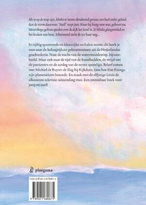 In vijftig spannende en kleurrijke verhalen neemt dit boek je mee naar de belangrijkste gebeurtenissen uit de Nederlandse geschiedenis. Naar de nacht van de watersnoodramp, bijvoorbeeld. Maar ook naar de tijd van de hunebedden, de strijd van de patriotten en de aanleg van de eerste spoorlijn. Beleef samen met Michiel de Ruyter de Slag bij Kijkduin. Lees hoe Eise Eisinga zijn planetarium bouwde. En maak met de elfjarige Louis de allereerste televisie-uitzending mee. Een onmisbaar boek voor jong en oud!