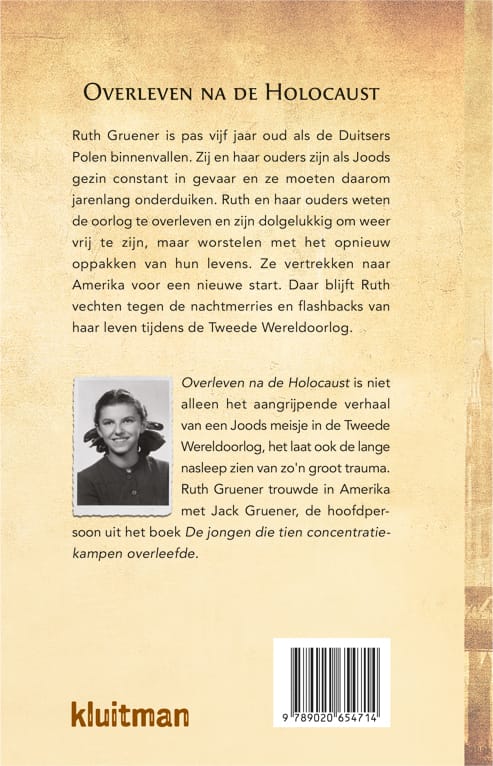Overleven na de Holocaust is niet alleen het aangrijpende verhaal van een Joods meisje in de Tweede Wereldoorlog, maar laat ook zien met wat voor moeilijkheden iemand te maken krijgt in de lange nasleep van een groot trauma. Ruth Gruener is de vrouw van Jack Gruener, de hoofdpersoon uit het boek De jongen die tien concentratiekampen overleefde.