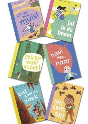 Leeskilometers maken wordt wel heel leuk met dit pakket! Zelf een verhaal lezen is geweldig, zeker voor beginnende lezers. De AVI Start boeken in dit pakket gaan over herkenbare thema’s voor kinderen van 6-7 jaar. Waarom zit juf in de boom? Waar is oet naar op zoek? En wat is muis toch aan het doen? Het samenspel van tekst en illustraties zorgt ervoor dat kinderen de verhalen niet weg willen leggen.