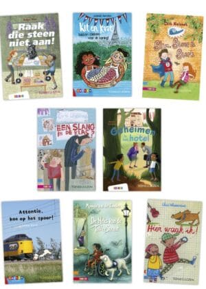 Pakket met acht verschillende toneelleesboeken voor groep 4.
