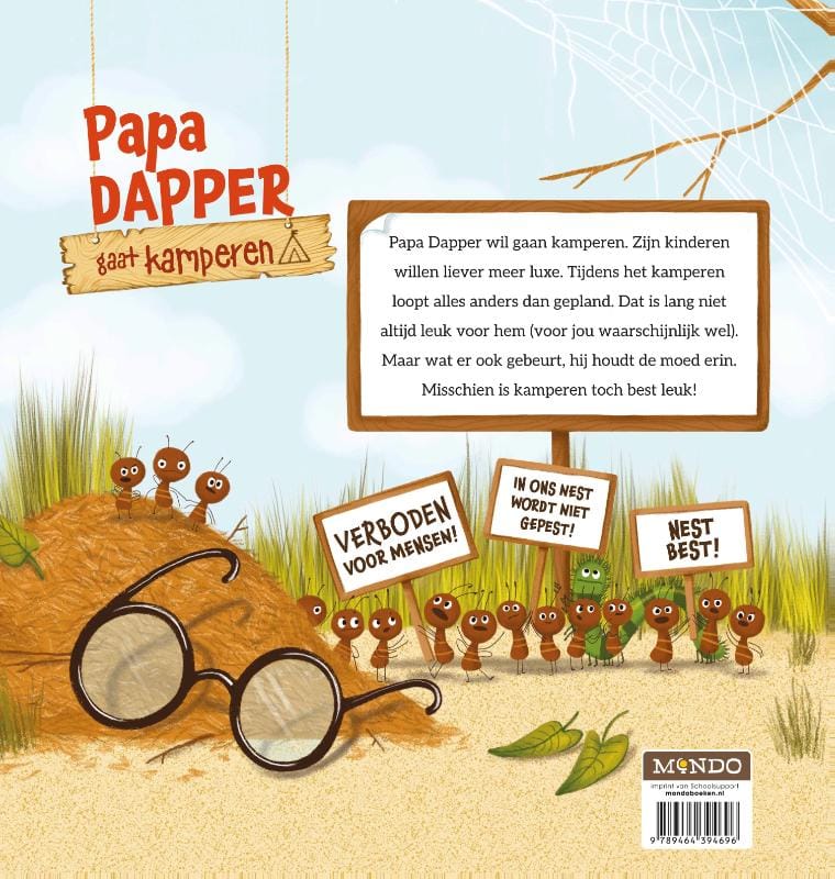 Papa Dapper wil gaan kamperen. Zijn kinderen willen liever meer luxe. Tijdens het kamperen loopt alles anders dan gepland. Dat is lang niet altijd leuk voor hem (voor jou waarschijnlijk wel). Maar wat er ook gebeurt, hij houdt de moed erin. Misschien is kamperen toch best leuk!