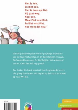 Lekker dik AVI groeiboek voor beginnende lezers om zelf te lezen. Het AVI-niveau loopt op van AVI start t/m AVI M4. Koks Piet en Riet beleven allerlei grappige avonturen. In dit boek krijgen ze ruzie. Piet vertrekt naar zee. En Riet blijft in het restaurant achter. Komt het ooit nog goed?