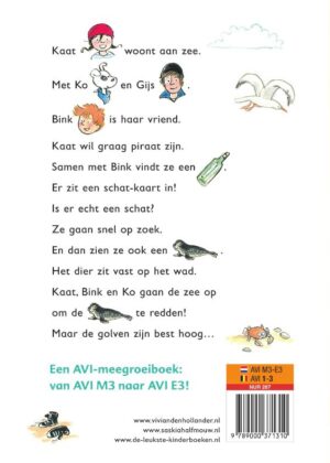 Kaat woont aan zee, samen met haar hondje Ko en haar vader Gijs. Ze wil niets liever dan piraat zijn. Verderop, bij de vuurtoren, komt Bink wonen. Hij houdt ook van avonturen en ze worden vrienden. In Kaat en Ko vinden ze een fles met een brief erin. Het is een schatkaart! Samen gaan Kaat en Bink op zoek naar de schat. En in Kaat en Ko de zee op! ziet Bink ineens iets waar hij erg van schrikt: op het wad zit een zeehond verstrikt in een net! Lukt het de twee vrienden om het dier te redden?