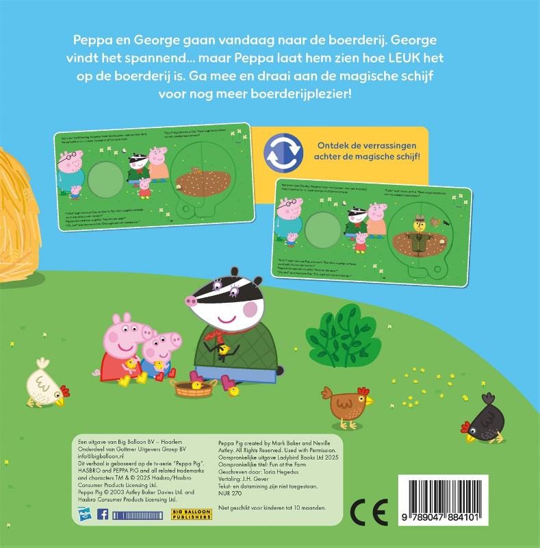 ‘Plezier op de boerderij’ is een Peppa Pig kartonboek met een magische draaischijf! Peppa en haar familie gaan naar de boerderij, maar George vindt het spannend. Peppa laat zien hoe leuk het boerenleven is. Ga mee op avontuur en draai aan de magische schijf voor verstopte verrassingen en nóg meer boerderijplezier. Leuk om voor te lezen voor kindjes vanaf 3 jaar.