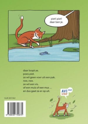 AVI Strips zijn stripboeken die speciaal geschreven zijn voor beginnende lezers. De grappige illustraties van brutale Poes Piet, getekend door Silvie Buenen, laten het verhaal echt tot leven komen. Het fijne aan stripboeken is dat tekst en beeld elkaar versterken. Zo leren kinderen makkelijk nieuwe woorden, want de illustraties helpen hen daarbij. Dat is nog eens een leuke manier om te oefenen met lezen! Ga mee op avontuur met Poes Piet en ontdek wat er buiten haar veilige huis allemaal te beleven valt.