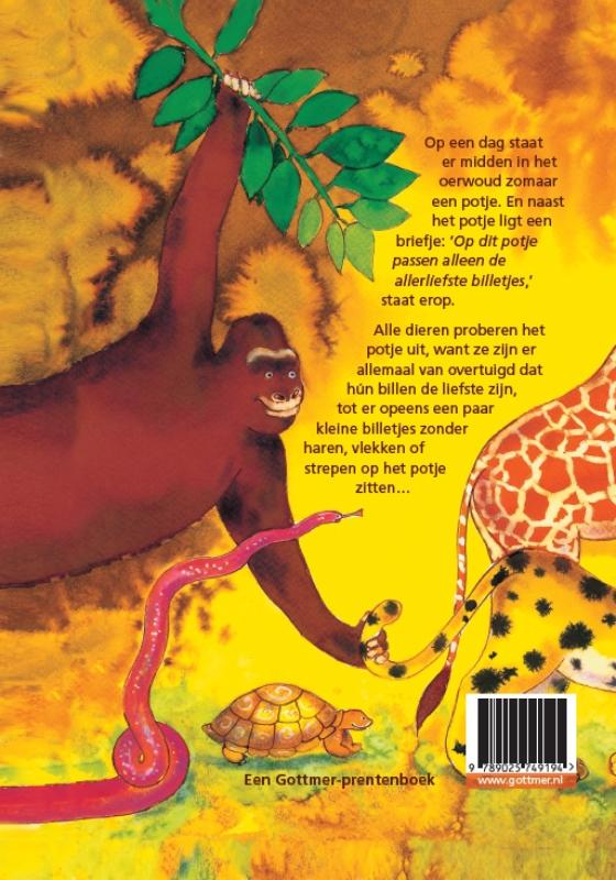‘Potje!’ van Mylo Freeman is een heerlijk prentenboek over zindelijkheid en op het potje gaan. Voor kinderen vanaf 2 jaar. Op een dag staat er midden in het oerwoud zomaar een potje. En naast het potje ligt een briefje: ‘Op dit potje passen alleen de allerliefste billetjes.’ Alle dieren proberen het potje uit, maar de billen van de olifant zijn te groot, de slang heeft helemaal geen billen en de aap weet niet eens wat hij met een potje moet doen. Terwijl de dieren kibbelen, komt er opeens een jongetje tevoorschijn – en dan beseffen ze voor wie het potje is bedoeld. Dit keer zijn alle dieren het hartgrondig met elkaar eens: dit schattige jongetje heeft echt de liefste billetjes!