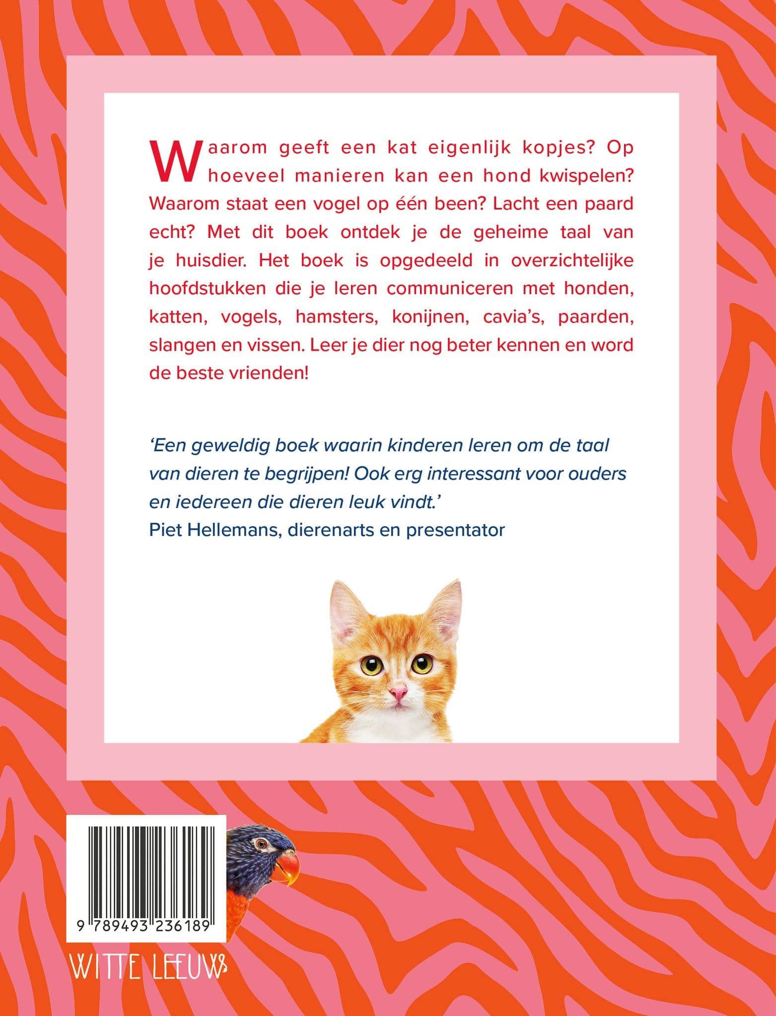 Het boek is opgedeeld in overzichtelijke hoofdstukken die je leren communiceren met honden, katten, vogels, hamsters, konijnen, cavia’s, paarden, slangen en vissen.