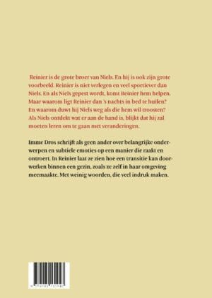 Reinier is de grote broer van Niels. En hij is ook zijn grote voorbeeld. Reinier is niet verlegen en veel sportiever dan Niels. En als Niels gepest wordt, komt Reinier hem helpen. Maar waarom ligt Reinier dan ’s nachts in bed te huilen? En waarom duwt hij Niels weg als die hem wil troosten? Als Niels ontdekt wat er aan de hand is, blijkt dat hij zal moeten leren om te gaan met veranderingen.