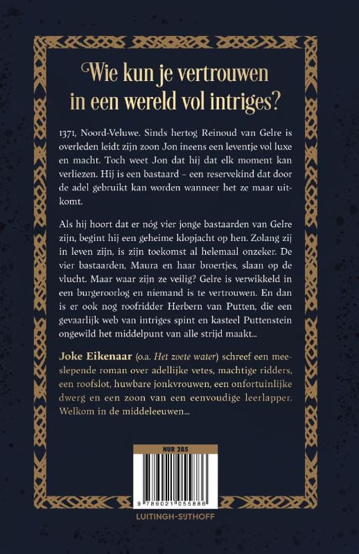 Joke Eikenaar staat bekend om haar meeslepende historische romans voor jongeren. In haar YA-roman Reservekinderen trekt ze alle registers open en draait alles om de vraag: wie is er nog te vertrouwen in een wereld vol intriges? Duik in de wereld van bastaardkinderen in middeleeuws Gelderland!