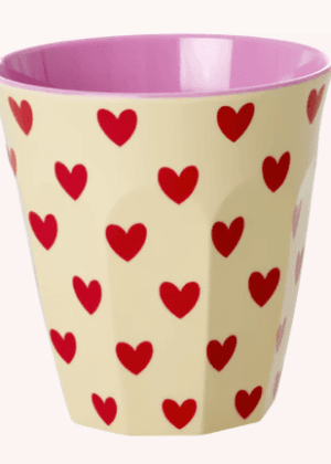 Rice – medium beker – melamine – darling hearts – roze/rood