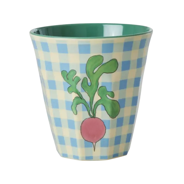 Medium melamine beker met de mooie ‘Ravishing Radish’ (Prachtige Radijs) print. Deze beker, met zijn leuke ontwerp, is perfect om wat kleur aan je dag te geven. De beker is mooi en praktisch! Ideaal voor je favoriete drankje, het organiseren van potloden of voor een picknick. Let op, dit product is niet te gebruiken voor hete drankjes of voor de magnetron.