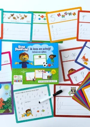 Met deze Rompompom schrijfkaarten en een uitwisbare stift leren kinderen de letters en cijfers van school schrijven. Zo leren ze bijvoorbeeld de letter van hun eigen naam of het cijfer dat hoort bij hun leeftijd! In dit leuke koffertje zitten kaarten met verschillende schrijfoefeningen met letters en cijfers. Spelenderwijs oefenen kinderen zo het lezen en schrijven van de letters en het lezen van woordjes. De schrijfkaarten zijn door de uitwisbare stift telkens opnieuw te gebruiken, dus er kan eindeloos geoefend worden!