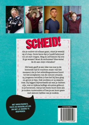 Scheid! Alles wat je moet weten als je ouders uit elkaar gaan is hét handboek over scheiden waarin jongeren vertellen hoe zij dit hebben ervaren (en wat ze hielp). Voor lezers van 10 tot ongeveer 16 jaar.