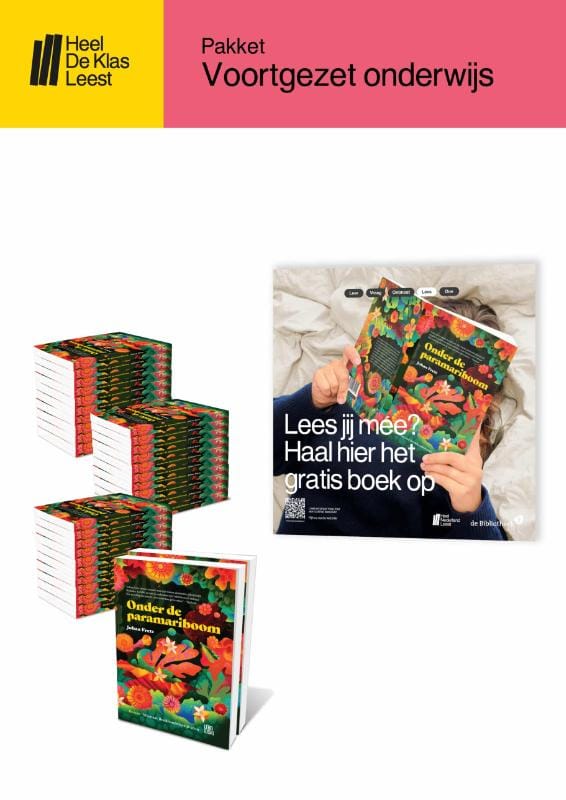 Scholen kunnen t/m 23 mei bij jouw boekhandel een Schoolpakket voor Heel De Klas Leest bestellen. Dit jaar is ‘Onder de paramariboom’ van Johan Fretz het boek voor de bovenbouw van het voortgezet onderwijs. Er is een ander boekenpakket beschikbaar voor groep 7 en 8 van de basisschool en klas 1 en 2 van het vmbo.