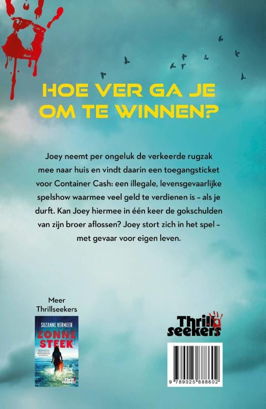In Speler 13, de nieuwe thriller van de koningin van de plottwists Maren Stoffels en onderdeel van de gloednieuwe serie Thrillseekers, neemt Joey per ongeluk de verkeerde rugzak mee naar huis. Hij vindt daarin een toegangsticket voor Container Cash: een illegale, levensgevaarlijke spelshow waarmee veel geld te verdienen is – als je wilt. Kan Joey hiermee in één keer de gokschulden van zijn broer aflossen? De regels van Container Cash zijn simpel: stap een container in en voer de opdracht uit. Als je eruit komt, krijg je het geldbedrag dat erop staat. Joey stort zich in het spel – met gevaar voor eigen leven.